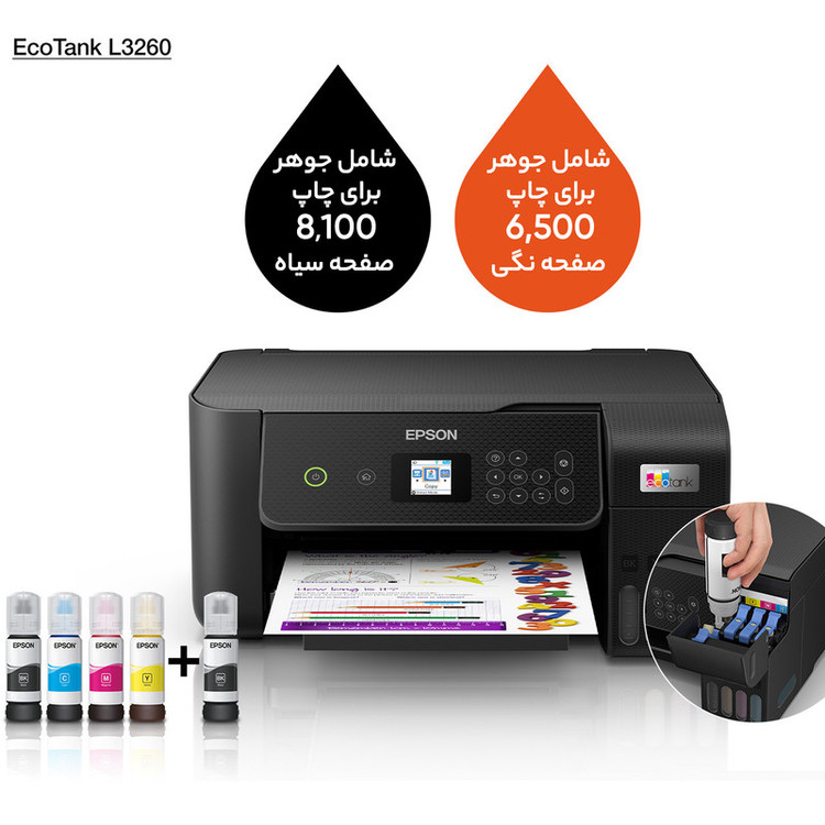فناوریها و درگاههای ارتباطی: USB ۲.۰, Wi-Fi, Wi-Fi Direct / دارای کابل برق و جوهر استارتر