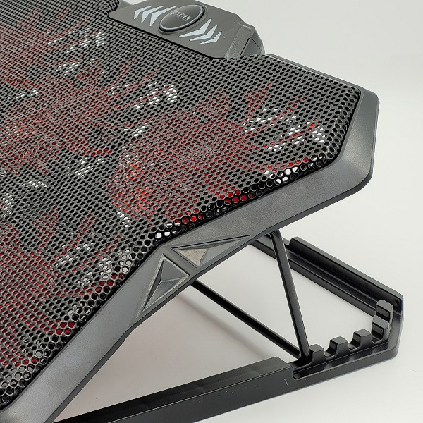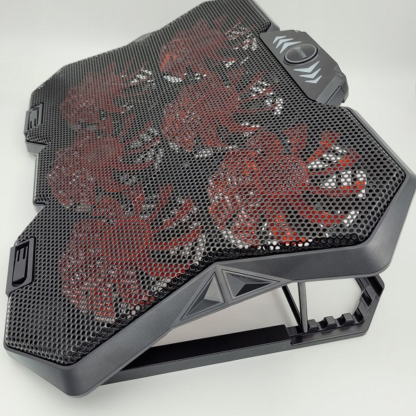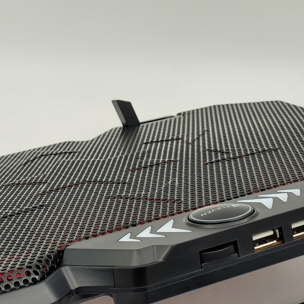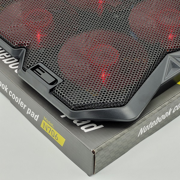 کول پد ELEVEN مدل N706 یکی از بهترین کول پد های سری گیمینگ مناسب لب تاب های گیمینگ هستش. طراحی فوق العاده N706 که توسط شرکت ELEVEN طراحی گردیده و با قدرت خنک کنندگی 6 فن 4.5 اینچی با دور 1100±10%RPM و رنگ آمیزی فوق العاده زیبا بهمراه LED های قرمز که در داخل فن جای گرفته و همچنین پایه قابلیت تنظیم ارتفاع، باعث شده تا یکی از بهترین و کاربردی ترین کول پد های مخصوص لب تاب های گیمینگ باشد. جنس بنده از پلاستیک با کیفیت ABS و فلز می باشد، فلزی بودن صفحه رویی کولپد باعث تبادل بهتر حرارت می شود. این کول پد دارای یک دکمه اسکرولی جهت کم و زیاد کردن سرعت فن ها و همچنین خاموش و روشن کردن تعداد فن ها می باشد و پایه قابل تنظیم در زیر کول پد به صورت چند حالته و همچنین دو پایه روی کول پد جهت ثابت نگه دارنده لپ تاپ در حالت شیبدار میباشد . این کول پد مناسب لب تاب های گیمینگ که حرارت زیادی تولید میکنند هستش و به راحتی میتوانند تبادل حرارت را ایجاد کنند.