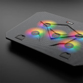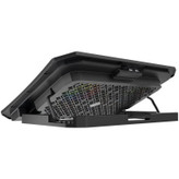 پایه خنک کننده لپ تاپ میشن Meetion MT-CP3030 Cooling pad for laptop فن لپ تاپ ها یکی از نقاط حساس و مهم آنهاست که معمولا هم پایین بدنه و نزدیک به محل تماس با سطح زمین است. با اینکه خود لپ تاپها به واسطه پایه معمولا اندکی از زمین فاصله دارند ولی باز هم هنگام پردازشهای سنگین داغ میکنند. برای اینکه چنین اتفاقی نیفتد باید بین فن و زمین فاصله وجود داشته باشد تا جریان هوا به خوبی صورت گرفته و CPU را خنک کند. کمپانی میشن با تولید کول پد Meetion MT-CP3030 راهکاری ساده برای حل این مشکل ایجاد کرده است. مشخصات کول پد Meetion MT-CP3030 پایه خنک کننده لپ تاپ میشن MT-CP3030 از فلز و پلاستیک مقاوم ABS استفاده شده است. این کول پد برای لپ تاپ های 9 تا 15.6 اینچ مناسب خواهد بود. ابعاد این کول پد دارای ابعاد 370x265x32 میلی متر بوده و وزن آن حدود 740 گرم می باشد. کول پد Meetion MT-CP3030 دارای 5 فن به همراه نورپردازی RGB می باشد. فن های پنج گانه توربوی پرسرعت داخلی باعث شده گرما با سرعت بیشتر از لپ تاپ شما رفع شود. چراغ های استفاده شده در این محصول LED می باشد. کول پد Meetion MT-CP3030 دارای 2 درگاه USB است که به شما این امکان را می دهد از لپ تاپ خود برای تغذیه پایه و اتصال دستگاه های دیگر استفاده کنید. خنک کننده لپتاپ میشن قابلیت تنظیم شیب (3 حالت) را داشته و شما می توانید با توجه به شرایط خود آن را تنظیم کنید.