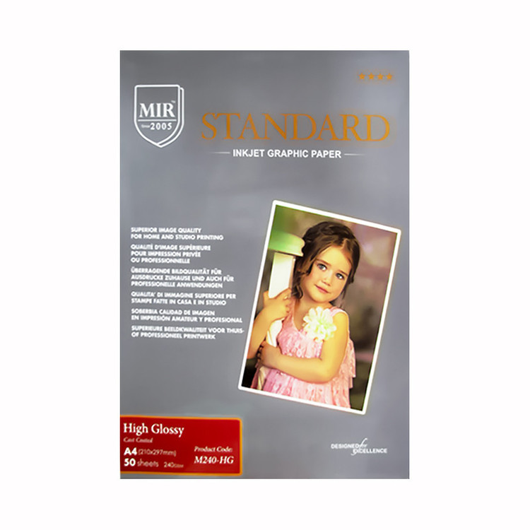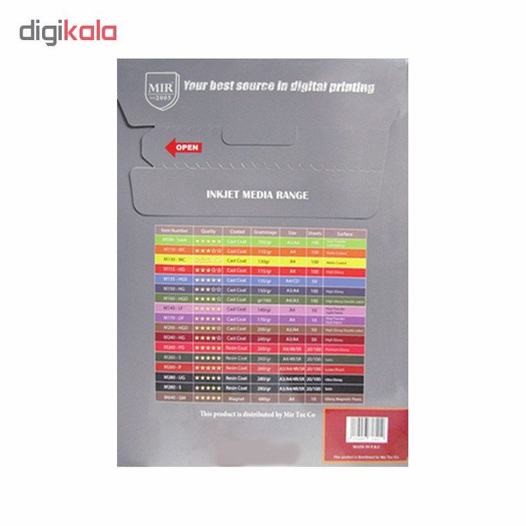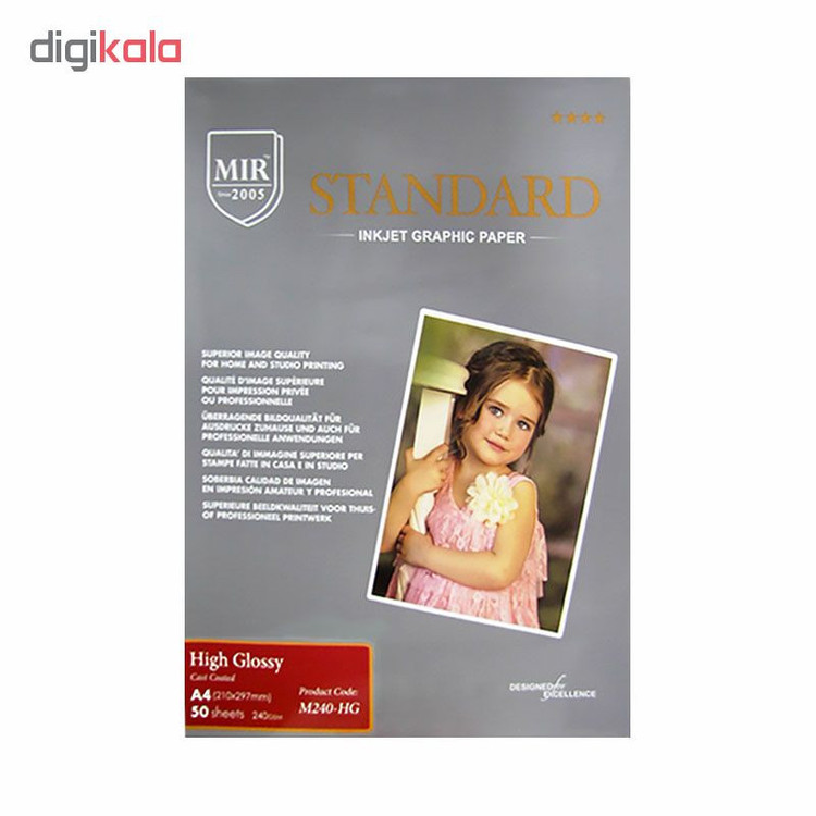 کاغذ چاپ عکس فتو گلاسه میر مدل M240-HG : رویه این کاغذ از نوع براق می باشد که به آن زیبایی خاص و جذابی داده است. کاغذ میر مدل M240-HG با کیفیت بالا و جذب جوهر عالی و ماندگاری بلند مدت می باشد. این نوع کاغذ به دلیل کیفیت بالا در عکاسی ها بسیار پر کاربرد می باشد.