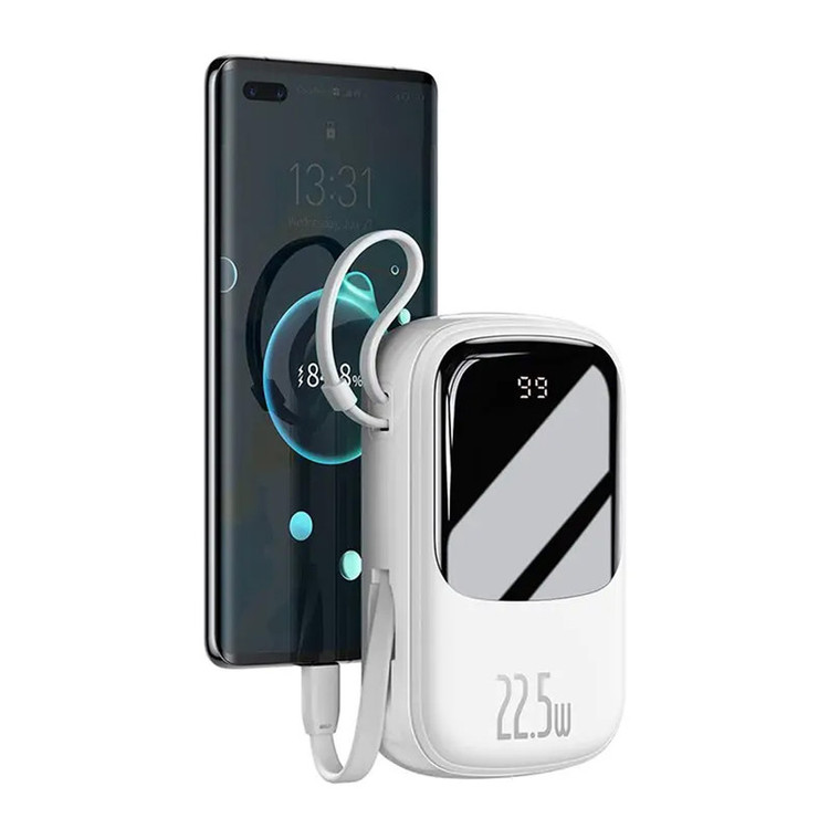 یکی از بهترین پاوربانکهایی که میتوان خریداری کرد پاوربانک Qpow محصولی از کمپانی Baseus است که دارای ظرفیت اسمی 20000 میلیآمپر ساعت است. این محصول دارای سه خروجی است که یکی از آنها پورت USB بوده و به شما این امکان را میدهد تا بتوانید دو گوشی را با شدت جریان و ولتاژ 5V-3A شارژ کنید. همچنین این پاوربانک دارای 1 پورت USB-C است که هم بعنوان ورودی و هم خروجی استفاده میشود. کابل متصل 19 سانتیمتری هم با کانکتور USB-C آخرین خروجی آن به شمار میرود. خروجیهای این پاوربانک از استاندارد شارژ سریع بهره میبرند و میتوانند گوشی شما را را با سرعت بالا شارژ کنند. پاوربانک Baseus مجهز به یک چیپست هوشمند است که قادر است که از باتری گوشی شما در برابر نوسانات و اتصالات کوتاه محافظت کند به گونهای که شدت جریان خروجی از پاوربانک را با شدت جریان ورودی گوشی شما یکسان میکند تا هیچ گونه آسیبی به باتری گوشی شما وارد نشود. بر روی بدنه این پاوربانک نمایشگر دیجیتال قرار داده شده که با فشار دادن دکمه پاور، که قادر است میزان شارژ باتری پاوربانک را به شما نشان بدهد؛ کار شما را برای مدیریت شارژ این محصول بسیار راحت بکند. این امر باعث شده تا در مواقعی که گوشی شما خاموش شده با پاوربانک خالی از شارژ رو به رو نشوید. بدنه پاوربانک از پلاستیک + ABS و فیبر کربن بوده که از مقاومت بالایی در برابر خط و خش و ضربه و حرارت دارد. ابعاد این محصول 32.8×74.6×123 میلیمتر بوده و وزن آن 360 گرم است که برای یک پاوربانک 20000 بسیار مطلوب است.