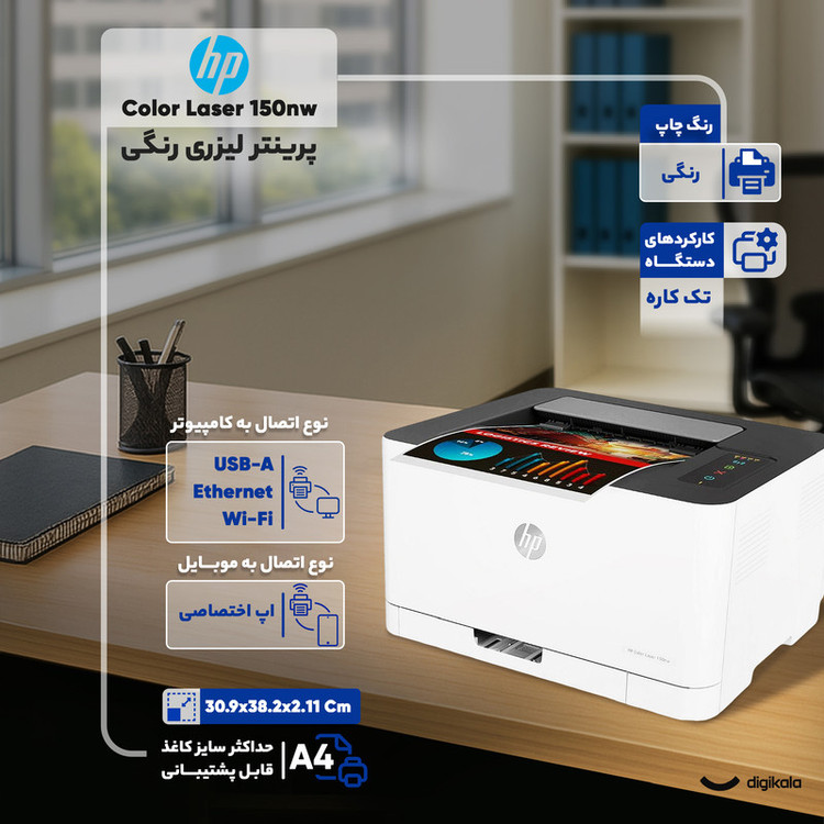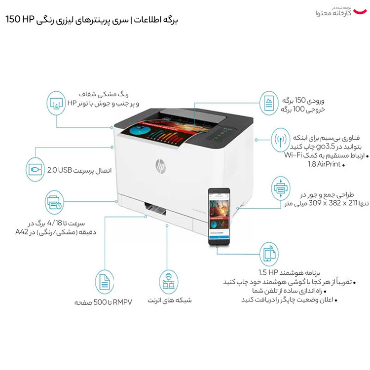 ظرفیت سینی ورودی کاغذ : ۱۵۰ برگ