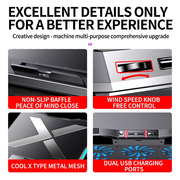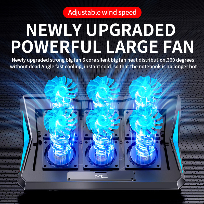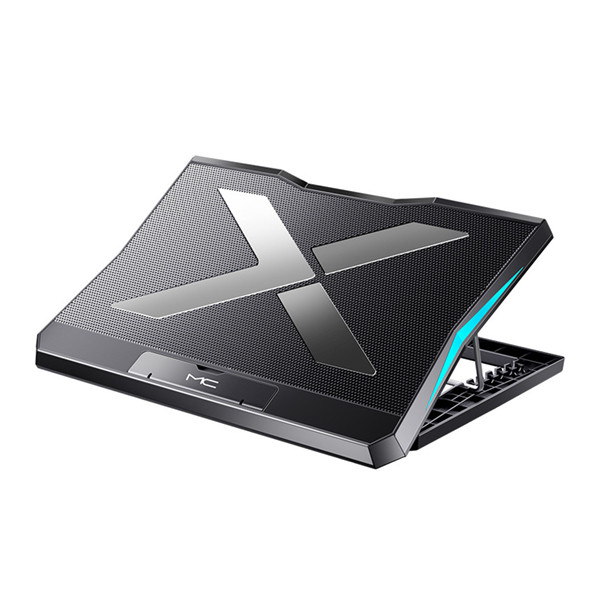 کمپانی ام سی از سال 2014 فعالیت خود در زمینه تجهیزات جانبی کامپیوتر را آغاز کرده و با طراحی های خاص و چشم نواز و طراحی صنعتی حساب شده و کارآمد توانسته جای خود را در بین برند های مطرح بخوبی باز کند . کولپد ام سی مدل Q3 با ظاهری بسیار شیک و زیبا ، دارای 6 عدد فن ارتقا یافتهی بیصدا است که سیستم خنک کنندهی فوقالعادهای دارد . طراحی دستگاه به گونهای است که دارای منافذ زیادی برای سیستم خنک کنندگی بهبود یافته تر است و جریان هوا را به خوبی هدایت میکند . یک بافل تاشو در پایین دستگاه تعبیه شده تا از سر خوردن لپتاپ جلوگیری کند . یک عدد ولوم چرخشی برای تنظیم سرعت فن ها در پشت دستگاه قرار دارد که با توجه به دما آن را تنظیم کنید . همچنین این کولپد دارای دو عدد پورت USB است که در صورت اشغال بودن پورت های USB لپتاپ ، میتوانید از یکی از پورت ها برای اتصال لوازم جانبی از قبیل ماوس ، کیبورد و … استفاده کنید . توصیه : برای بهره وری بهتر کول پدها و اشغال نشدن پورت USB و جلوگیری از آسیب احتمالی به پورتهای لپ تاپ ، بهتر است در زمان دسترسی به برق شهری ، کول پد را به وسیله یک شارژر قدیمی موبایل روشن نمایید .