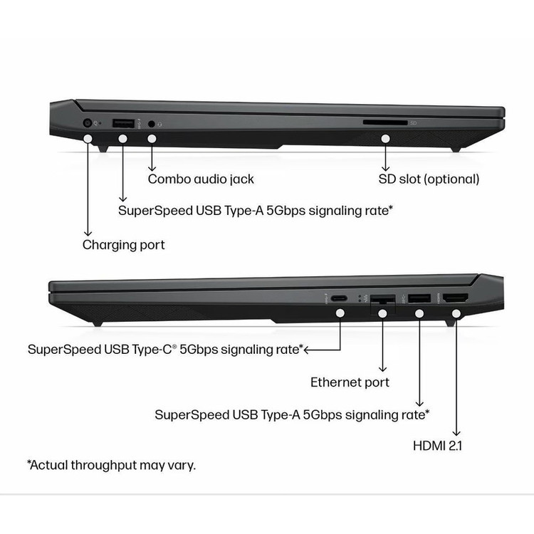 سایر توضیحات درگاههای ارتباطی : یک درگاه USB-C (از نوع USB ۳.۲ با سرعت ۵ گیگابیت بر ثانیه و پشتیبانی از DisplayPort ۱.۴ و تکنولوژی HP Sleep and Charge) / دو درگاه USB-A (از نوع USB ۳.۲ با سرعت ۵ گیگابیت بر ثانیه، یک درگاه با تکنولوژی HP Sleep and Charge)